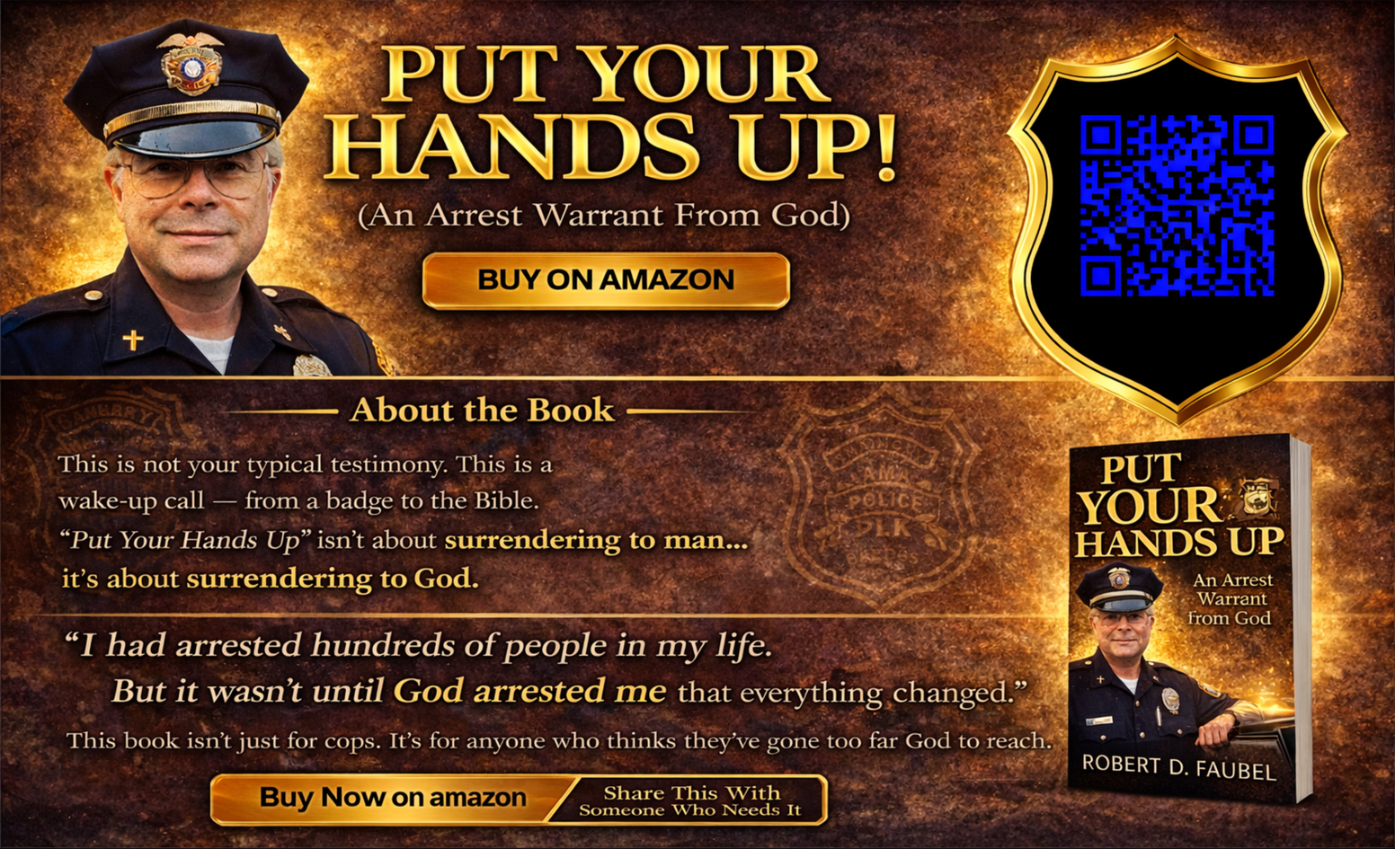 In a world filled with so much chaos and confusion it’s refreshing to hear the victorious journey of my brother and friend Officer Bob Faubel. In his book “Put Your Hands Up” Bob captures and releases that joy that comes from knowing the giver of life in a simple easy to read testimony that many will identify with.